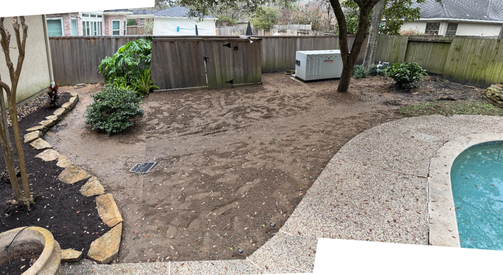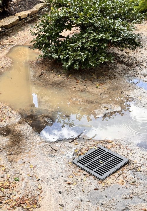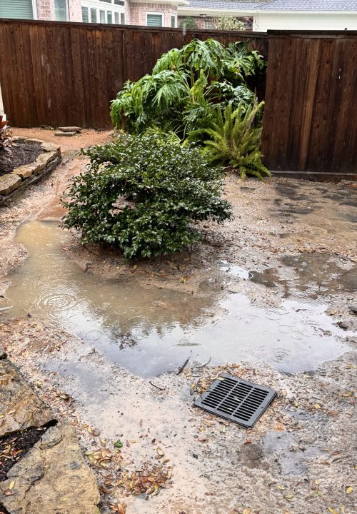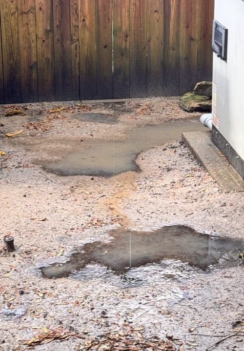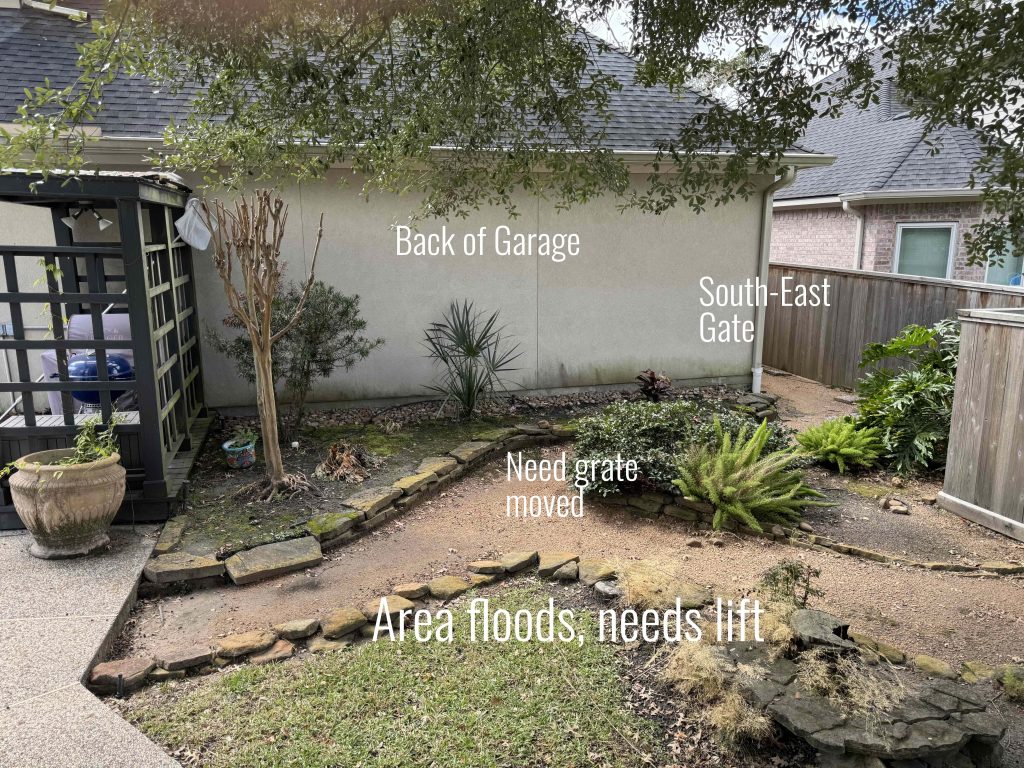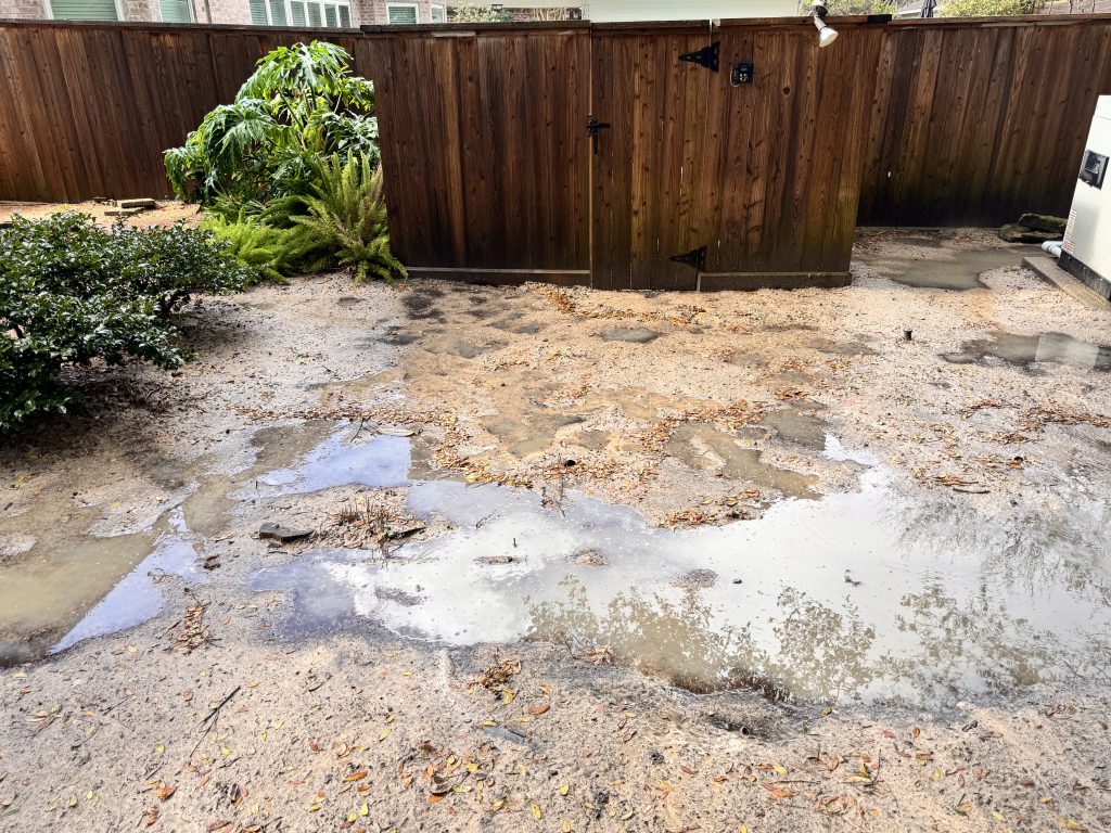 2022 condition of the north side of the backyard prior to replacement of drainage pipes, additional drainage pipes and grates