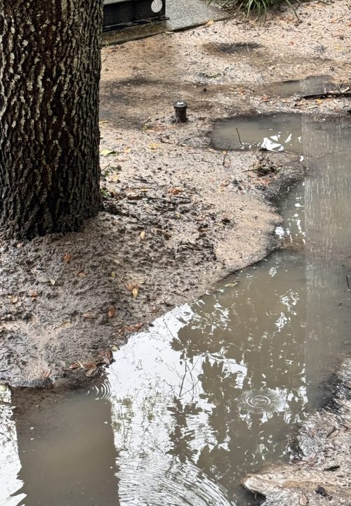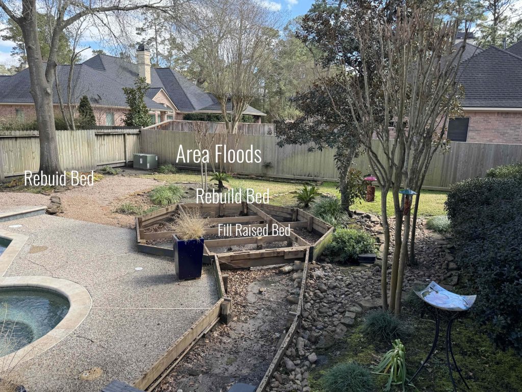 March 9, 2026: filled with sand, extended drainage pipe, and moved grate