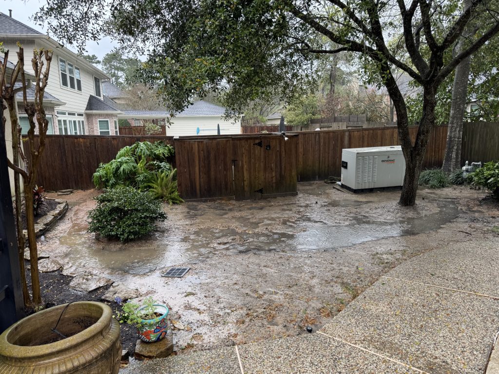 Before the drainage pipes on the north side of the yard were replaced and two drainage basins were added, the entire backyard flooded. Shown in this video are the north side of the yard and the downspouts near the yard entrance.
